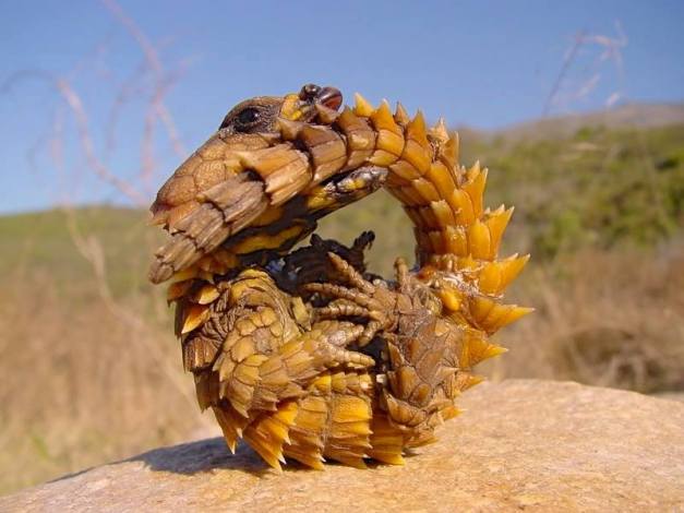 It’s called an armadillo girdled lizard, but it’s not really an armadillo of any kind. They’re native to the desert areas along the western coast of South Africa. It’s true — Google and I have become good friends. lol!